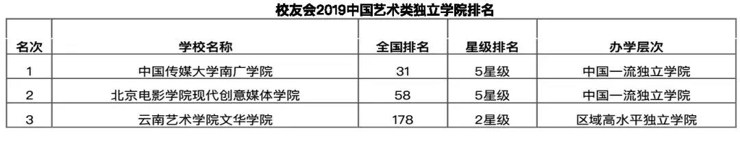 2019年中国艺术类民办大学排名